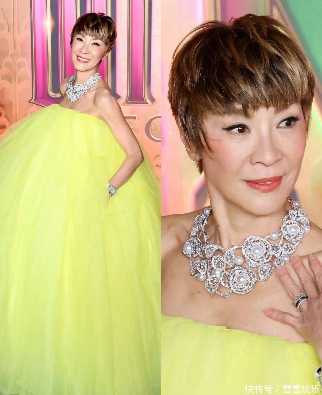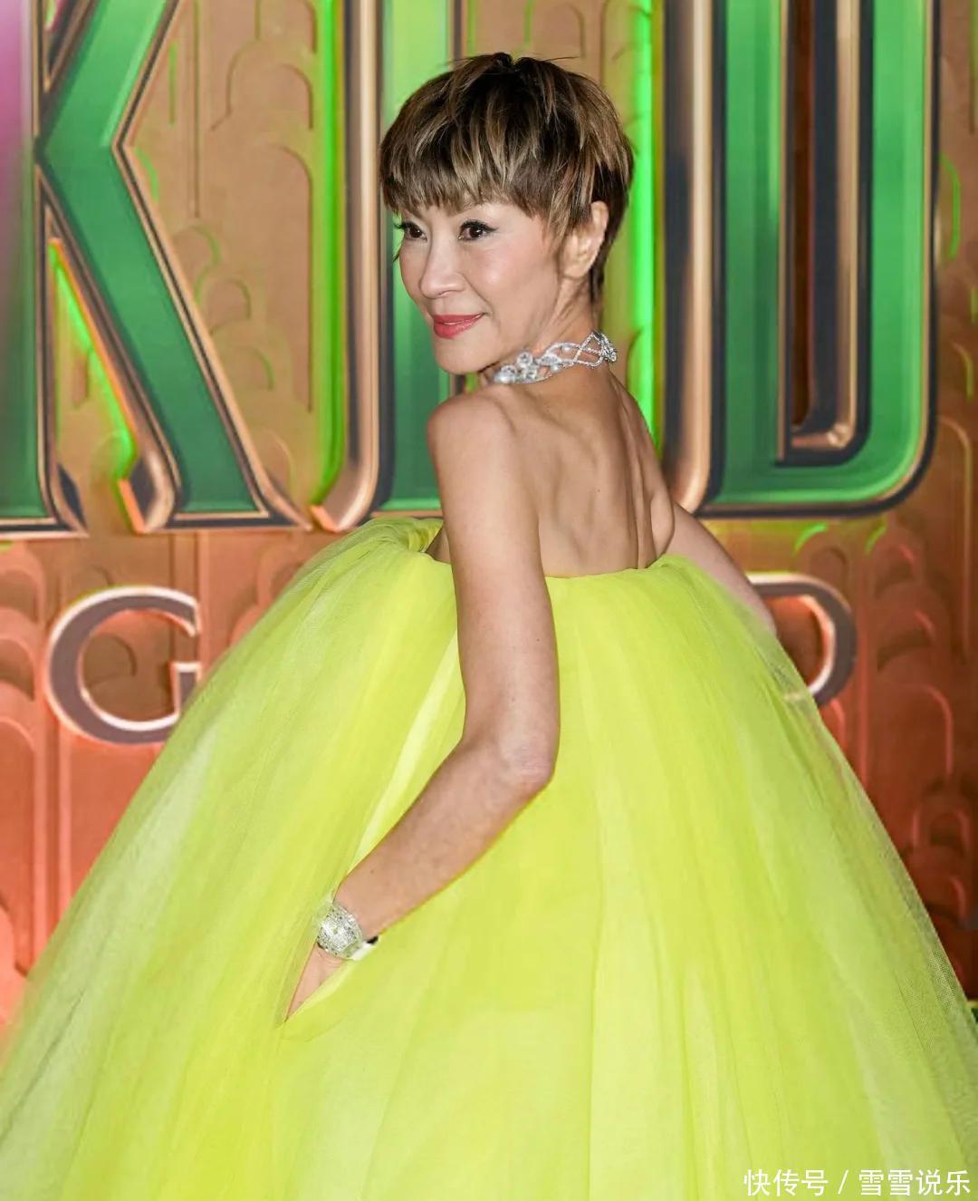 刷到个挺有意思的热搜,63 岁的杨紫琼又因为新造型引发热议啦!这次不是新片也不是奖项,而是新加坡《魔法坏女巫 2》首映礼上的打扮,评论区直接吵翻了天。 有人说她瘦得离谱,皮包骨头似的,皱纹都盖过演技了;也有粉丝护着她,觉得 63 岁能保持这样已经很棒,奥斯卡影后穿什么不用别人管。说实话,看到生图我也有点惊讶,亮黄色抹胸蓬蓬裙配浅金短发,远看气场依旧超强,但镜头拉近,锁骨凹得吓人,肩胛骨凸得明显,皮肤松弛还有老年斑,跟当年《卧虎藏龙》里的飒爽模样差太远了。