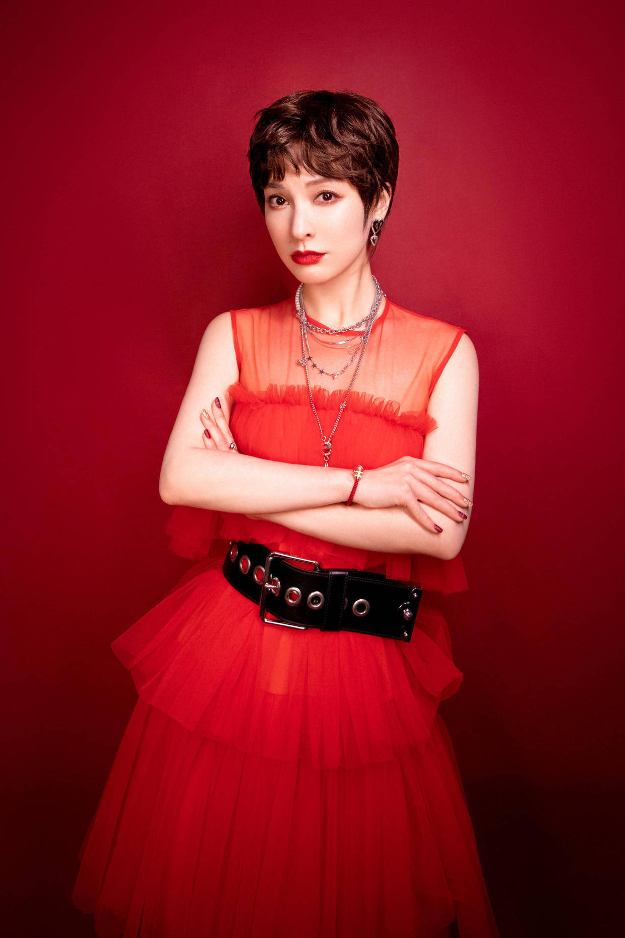 宽腰带:相较于细吊带来说,宽腰带则更加具有视觉冲击力,当我们选择一套红色的衣服时,搭配上黑色的腰带,红黑配的颜色选择也是令人啧啧赞叹的,而宽腰带的优点在于能够更加完美地展现出我们的腰部线条,对于身材的勾勒有着极大的帮助。